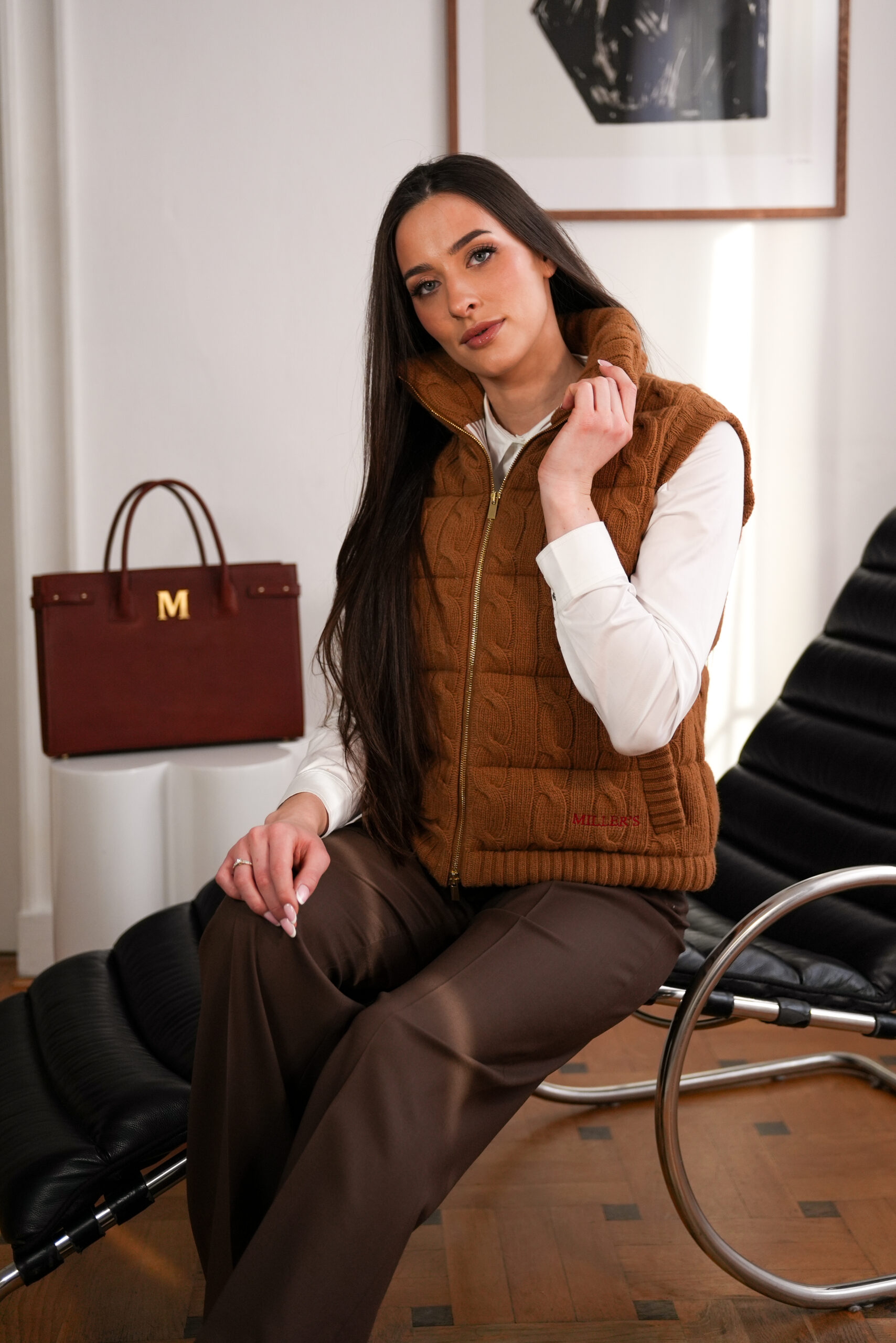 Fantazyjny wzór dzianych warkoczy, dodaje całości wyjątkowego charakteru i oryginalności. Praktyczny i stylowy – zapinany na solidny, metalowy zamek w przodzie, zapewnia wygodę noszenia i możliwość regulacji głębokości dekoltu. Model posiada kieszenie w cieciach, które łączą funkcjonalność z elegancją.